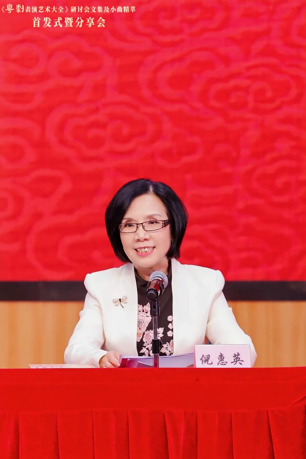 《粤剧表演艺术大全》主编倪惠英介绍了文集与小曲精萃的编撰背景、核心内容及后续规划。她指出,《粤剧表演艺术大全》自出版以来广受关注,获中宣部、文旅部高度肯定,其经验已被文旅部科教司向全国推广。